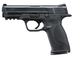 Umarex Smith & Wesson M&P BB Pistol Black Finish Semi-Auto CO2 Md: 2255050, A replica pistol based on the S&W Military and Police firearm. Featuring one 12g CO2 cylinder, an integrated accessory rail, and drop out magazine that holds 19 steel air gun BBs. The M&P BB pistol also features a manual safety, double action trigger, and fixed front and rear fiber optic sights., Type: Pistol Action: Semi-Auto Caliber: BBs Capacity: 19 shots Finish: Black Barrel Length: 4.25" Sights: Fiber Optic Front & Rear Weight: 1 lb Stock: Black Synthetic Length: 71/2", Manufacturer: Smith & Wesson, Model: 2255050 Read more...