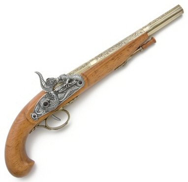 French 1800s Percussion Dueling Pistol with Wooden Body and Highly Decorated Brass Tone Barrel - Nice Replica Pirate Prop Gun Review