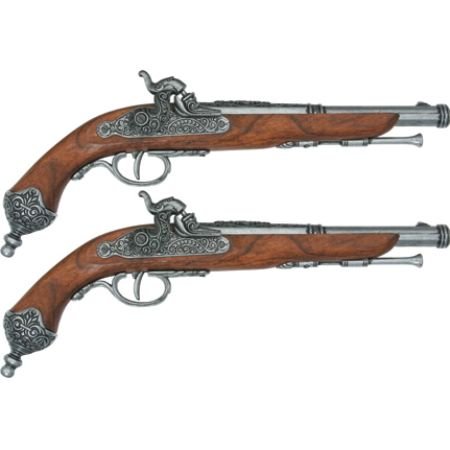 Denix Replicas - Italian Percussion Dueling Pistols Replicas with Wood Handles. Model: DX1013. Set of two. Each measures 15in. overall. Wood handle with 9in. pewter finish barrel. The Percussion Lock was a great improvement over the flintlock as it was less susceptible to weather-related misfires. The original of this pistol was made in Brescia, Italy in about 1825. This non-firing version is accurately detailed and shows typical Italian craftsmanship. Gift boxed. Country of Origin: SPAIN Read more...